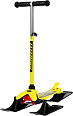 Новая детская модель для активного летнего и зимнего отдыха. Конструкция представляет собой раму самоката, на которую установлены морозостойкие пластиковые лыжи. Передние лыжи управляется поворотом руля. Колёса можно установить в любой момент, для этого в комплекте есть всё необходимое. Конструкция складывается: рулевая труба опускается к деке. Платформа (30х11 см) с шероховатым покрытием предотвращает скольжение ног. Высота руля регулируется и фиксируется в трёх положениях (58-68 см). Надёжный ножной тормоз. Maксимальная нагрузка - 40 кг. Диаметр колёс - 12/7 см. Вес ~ 2,7 кг.