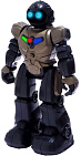 Интерактивный робот, управляемый пульта с джойстиками. Робот ходит и ездит во все стороны, говорит фразы и поёт песни. Световые эффекты: у робота светятся глаза и горят лампочки на груди. Высота робота - 26 см. Работает от аккумулятора, пульт - от батареек типа АА.