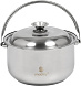 Диаметр - 18 см. Материал - нержавеющая сталь. Крышка. Крепкая дужка. Вес ~ 350 гр.